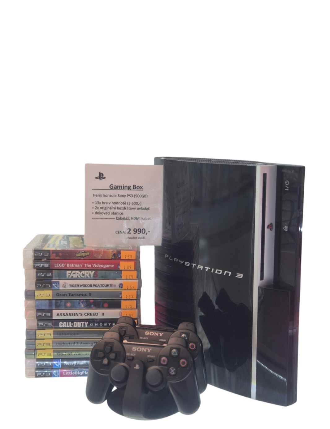 Gaming Box / PS3+2x ovladač+13 her+dokovací stanice, použité zboží