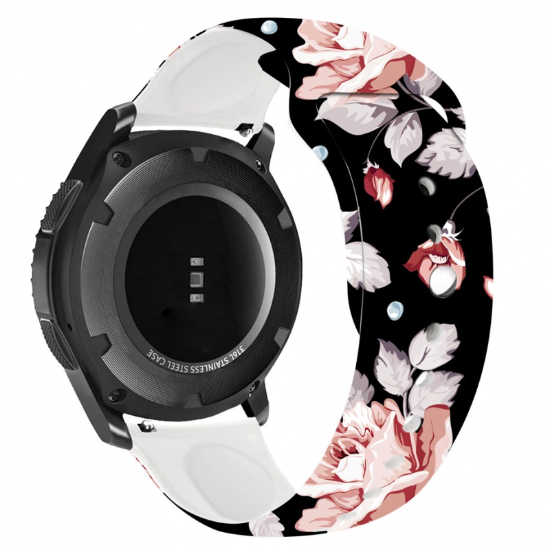 RhinoTech univerzální silikonový řemínek Quick Release černý s motivem květin 20mm