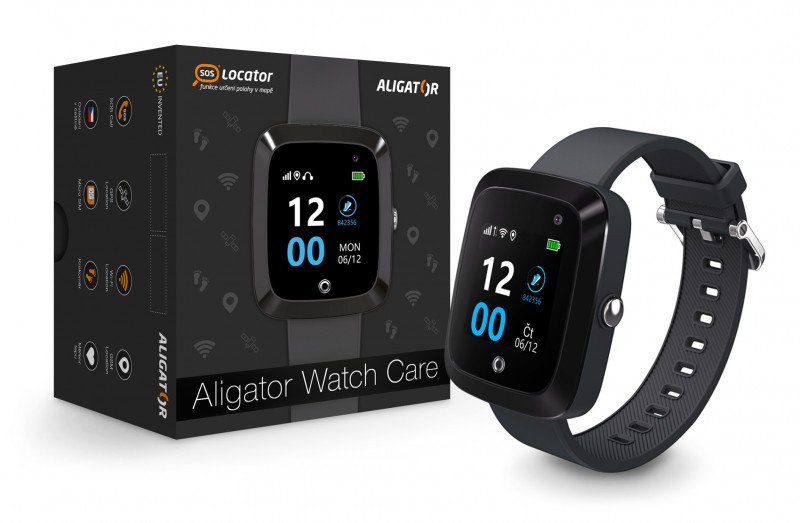 Seniorské chytré hodinky Aligator Watch Care, GPS, GSM, Wi-Fi, slot na SIM, černé